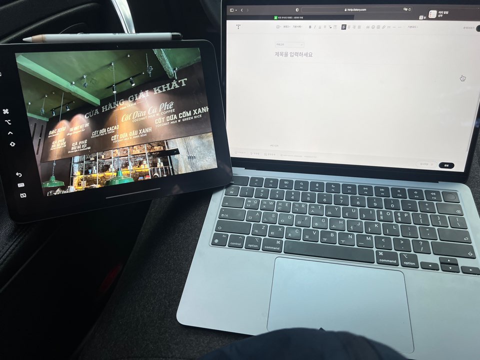 전 주로 블로그 작성을 할 때 ‘사이드카’ 기능을 많이 사용합니다. 왼쪽에는 편집해야 되는 사진과 오른쪽에는 적어야 되는 글을 배치하여 활용성을 높이고 있습니다.