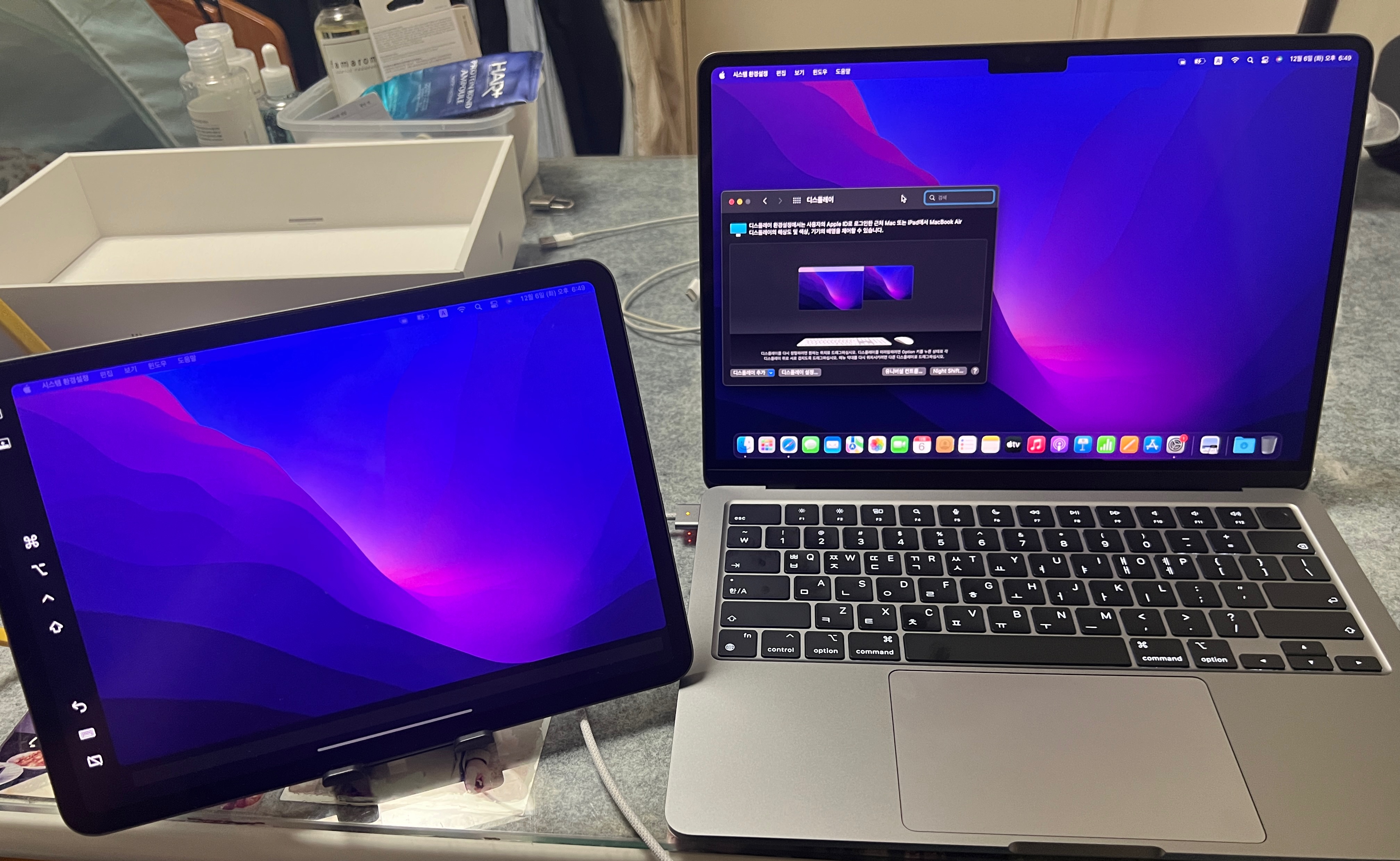 왼쪽 아이패드 오른쪽 맥북으로 정렬하면 이런 모습입니다.